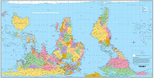 Hobo Dyer Equal Area World Map, south up, Africa centered version