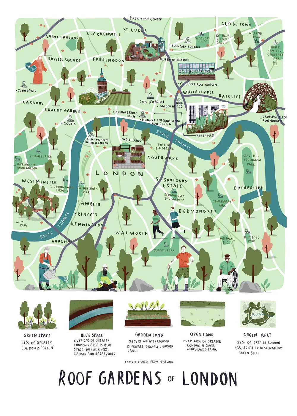The Roof Gardens of London map — Alex Foster, book, website and
